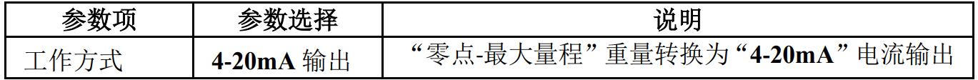 ⑵電流輸出型可選擇 4~20mA 模擬量輸出,即儀表將實(shí)時(shí)顯示及輸出重量值轉(zhuǎn)換為電流模擬量輸出的對(duì)應(yīng)值。