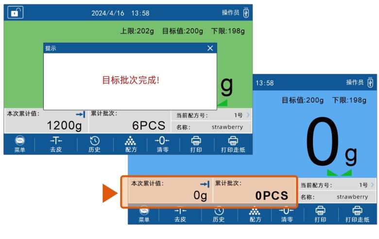 ● 數(shù)據(jù)自動記錄:自動記錄合格重量和批次 ,到達目標批次后會自動彈出批次完成報警,同時清空累計值和累計次數(shù);