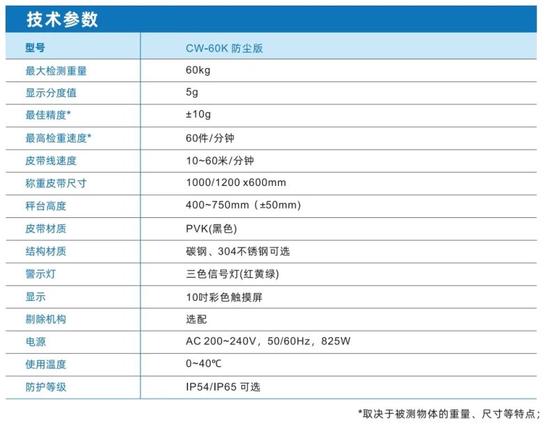 四、 防塵檢重秤的產(chǎn)品技術(shù)參數(shù)