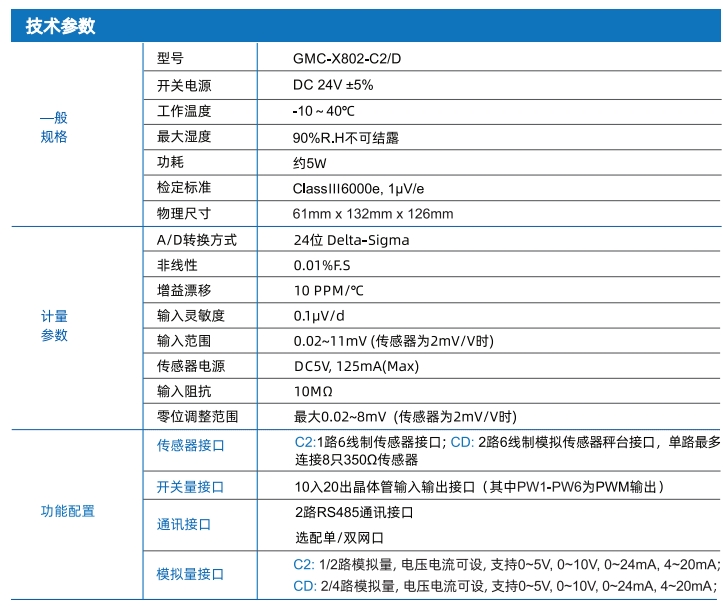 GMC-X802-C2/D產(chǎn)品是卡軌式安裝的稱重包裝控制模塊。可選單秤(C2)或雙秤(CD)應用。四路模擬量支持振盤式給料設備的大/小包裝控制。全新濾波算法和自適應控制算法使得控制更精準,調(diào)試更方便。適用于白糖、鹽、種子、大米、芝麻、味精、雞精、奶粉、咖啡、洗衣粉等粉狀/小顆粒狀較為均勻物料的定量稱量,廣泛應用在飼料、化工、糧食等需要定量包裝設備的行業(yè)。