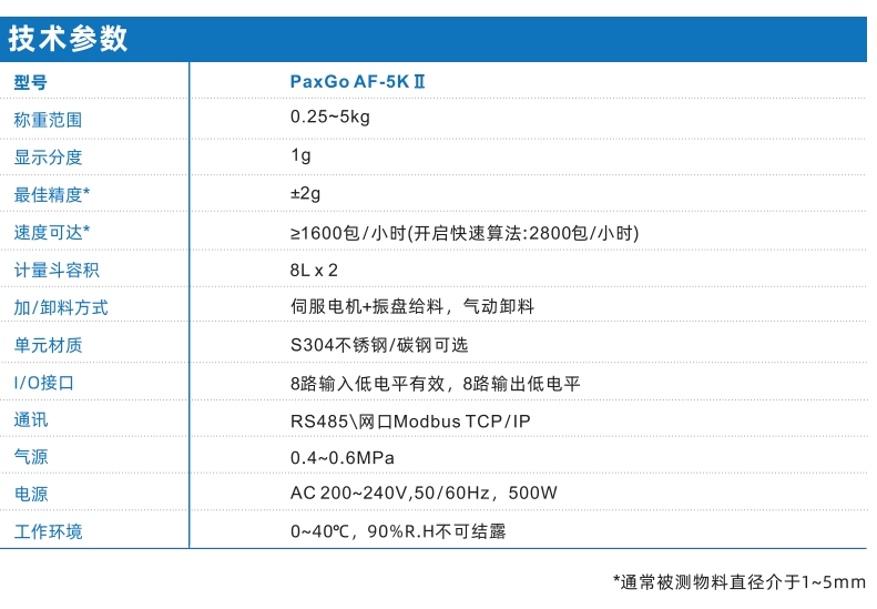 精準(zhǔn)稱重: 高速度寬量程,適用于0.25~5kg的包裝,開啟快速算法: 2800包/小時,最佳精度±2g。