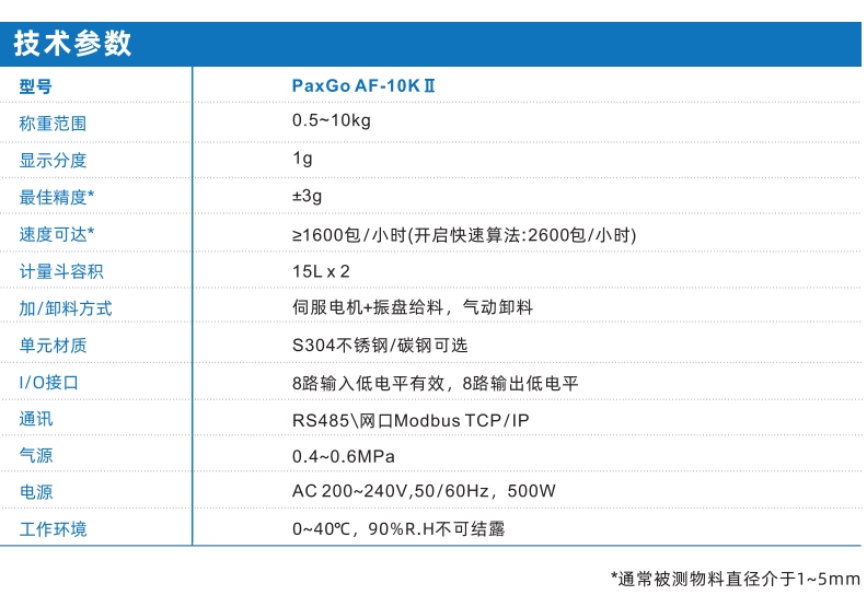 AF-10K II 顆粒自動定量包裝秤單元是一款針對顆粒狀物料自動定量的稱重組件,加料機構(gòu)采用“電機+振動給料機”方式實現(xiàn)多級給料,卸料為氣缸驅(qū)動方式實現(xiàn)快速卸料。該產(chǎn)品具有高速度、高精度、寬量程的特點,可廣泛應(yīng)用于糧食、飼料、化工、橡塑等行業(yè)的定量包裝機械。