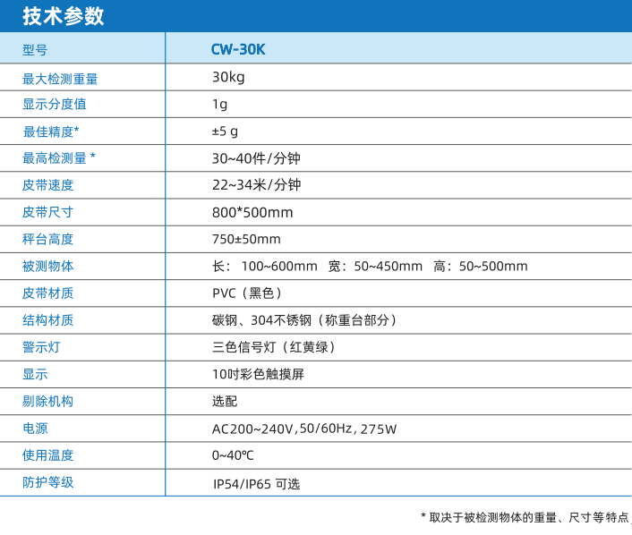 CW-30K是一款高效精準(zhǔn)、穩(wěn)定可靠的重量檢測(cè)機(jī),適用于檢測(cè)、計(jì)數(shù)和檢重1-30kg的包裝產(chǎn)品(桶裝、箱裝、袋裝等)或加工的部件,產(chǎn)品操作簡(jiǎn)單明了,日常維護(hù)方便。