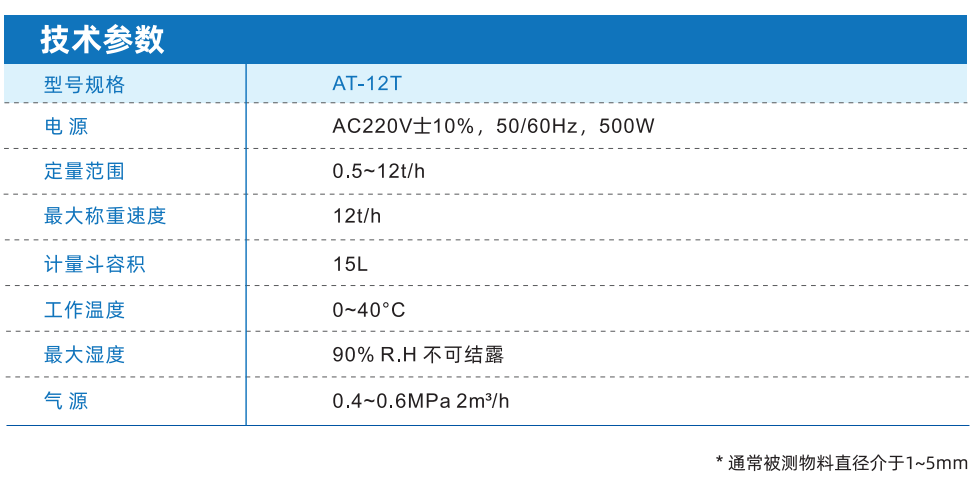 ● 高速穩(wěn)定: 定量范圍0.5~12t/h,最大稱重速度12t/h,計量斗容積15L;
