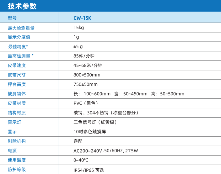 CW-15K自動(dòng)檢重秤是一款高速穩(wěn)定、精準(zhǔn)剔除的在線(xiàn)動(dòng)態(tài)檢重秤,在線(xiàn)檢重精度為±5g,最大檢測(cè)速度可達(dá)85次/分鐘,適用于檢測(cè)、計(jì)數(shù)和檢重1~15kg包裝產(chǎn)品(箱裝、桶裝、袋裝)或加工的部件,產(chǎn)品操作簡(jiǎn)單明了,日常維護(hù)方便,廣泛應(yīng)用于糧食、種子、化工、建材等稱(chēng)重設(shè)備行業(yè)。